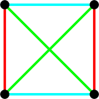 - il existe un ensemble de quatre points, dont trois n'appartiennent pas à une même droite.