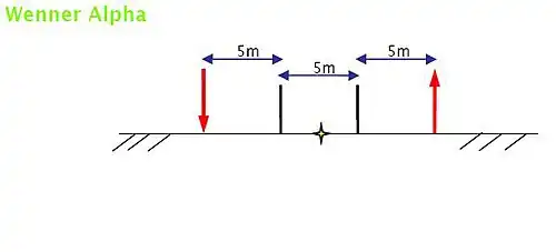 - Wenner Alpha : Les électrodes d’injection se situent de chaque côté du point de mesure :