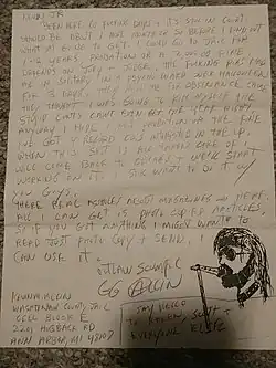 - ↑ (en-US) « GG Allin Archives | The GG Allin Manifesto », sur ggallinarchives.com (consulté le )