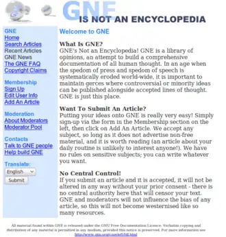 - (en) Site officiel de GNE (inactif, l'article au hasard affiche une page blanche, erreurs de recherche, avec une erreur de base de données)