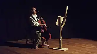 Il accompagne au violoncelle des poèmes Dada lus par la comédienne Maryline Fontaine pour le musée de l'Orangerie.