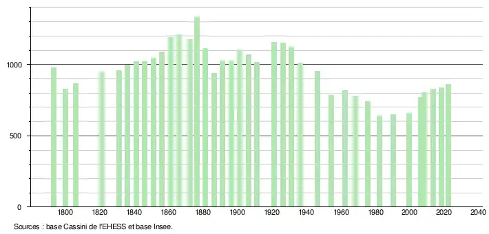 - ↑ Fiches Insee - Populations de référence de la commune pour les années 2006, 2007, 2008, 2009, 2010, 2011, 2012, 2013, 2014, 2015, 2016, 2017, 2018, 2019, 2020, 2021 et 2022.