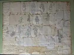 | Assemblage de vignettes légendées. Études de personnages historiques. | ND | Mine sur papier.Points de colle | 47×63 (hors cadre) | Collection particulière OM | ![]() |