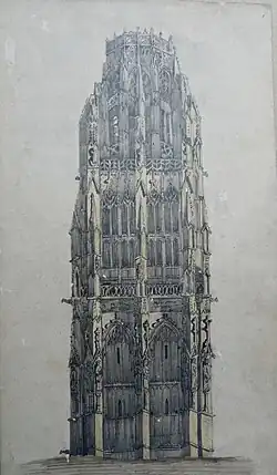 | Tour couronnée St-Ouen, Rouen | ND | Dessin techniques mixtes sur papier | 41,5×21 | Collection particulière BL | ![]() |