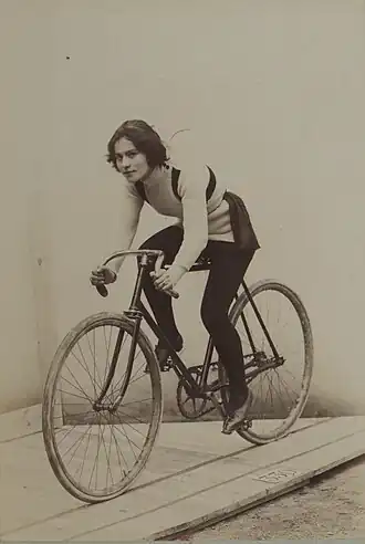 En novembre 1896, elle prend part à une course organisée par l'Artistic-Cycle-Club[note 3] au vélodrome d'hiver[15],[16] et finit 3e derrière Reillo et Lisette[17],[18].