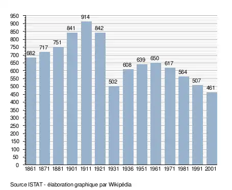 - ↑ (it) Popolazione residente e bilancio demografico sur le site de l'ISTAT.