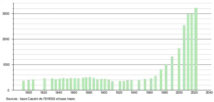 - ↑ Fiches Insee - Populations de référence de la commune pour les années 2006, 2007, 2008, 2009, 2010, 2011, 2012, 2013, 2014, 2015, 2016, 2017, 2018, 2019, 2020, 2021 et 2022.