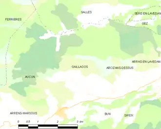 - ↑ « Orthodromie entre Gaillagos et Arrens-Marsous », sur fr.distance.to (consulté le ).