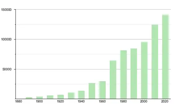 | 1950 | 26 861 | ▲ +95,25 % | |