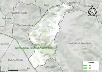 - les « coteaux de l'ouest du Saint-Gironnais » (7 504 ha), couvrant 17 communes dont 13 dans l'Ariège et 4 dans la Haute-Garonne[35].