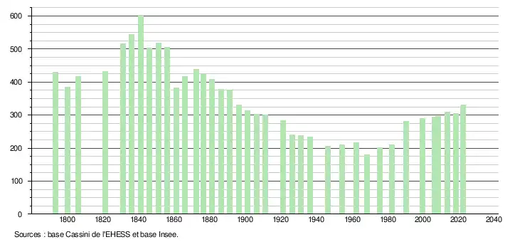 - ↑ Population municipale de référence en vigueur au 1er janvier 2025, millésimée 2022, définie dans les limites territoriales en vigueur au 1er janvier 2024, date de référence statistique : 1er janvier 2022.