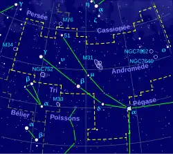 La galaxie d'Andromède, également désignée M31 dans le Catalogue de Messier et NGC 224, est une galaxie spirale située à environ 2,55 millions d'années-lumière du Soleil, dans la constellation d'Andromède.
