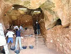 - Enfin les niveaux suivants sont à nouveau archéologiquement stériles. Ils remplissent le puits et scellent la grotte il y a un peu moins de 200 000 ans[10],[2],[3],[4],[11].