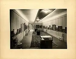 Il l'inaugure le 22 janvier 1918 avec une Exposition suisse des beaux-arts[25] réunissant plus de 500 œuvres. L'usurpation du titre officiel des expositions de la Société suisse des beaux-arts (SSBA) et l'importance de la collection exposée (autant que pour un Salon national) lui vaudra de nombreuses protestations[26].