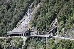 Les galeries pare-neige font partie du paysage ferroviaire dans certaines régions montagneuses qui connaissent des hivers particulièrement rudes.