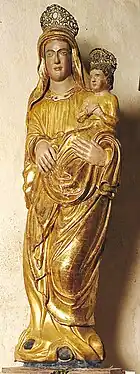 - L’église abrite une statue d’une Vierge à l’Enfant, probablement de facture locale, réalisée en bois polychrome et doré. Les deux personnages portent une couronne d’orfèvrerie. La statue proviendrait de l’église voisine, Notre-Dame-de-Queynac, fermée au moment de la Révolution et actuellement en ruines. Afin d’éviter des dégradations de la statue, un habitant de Queynac l’aurait alors cachée. Elle est retrouvée, au début du XIXe siècle, dans un four à pain.