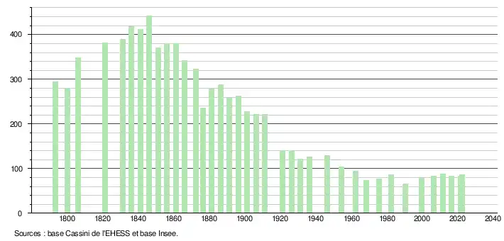 - ↑ Population municipale de référence en vigueur au 1er janvier 2025, millésimée 2022, définie dans les limites territoriales en vigueur au 1er janvier 2024, date de référence statistique : 1er janvier 2022.