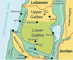 La Galilée (en hébreu : הגליל Ha-galîl, « le cercle, la région » ; en arabe : الجليل al-jalîl, même signification) est une large région située dans le nord d'Israël, traditionnellement divisée en trois parties :