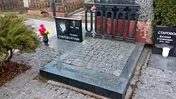 Starovoïtova est enterrée au cimetière Saint-Nicolas de Saint-Pétersbourg. 5 000 personnes assistent à ses obsèques[16].