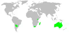 Les espèces de cette famille se rencontrent en Afrique australe, en Afrique de l'Est et en Argentine[1].