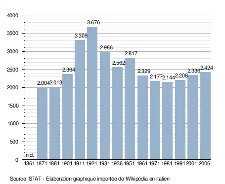- ↑ (it) Popolazione residente e bilancio demografico sur le site de l'ISTAT.