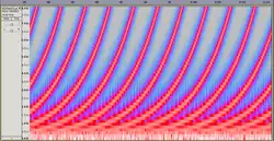 Chaque carré de la figure 1 indique une note, tout l'ensemble de carrés alignés verticalement formant une note de Shepard. La couleur de chaque carré indique l'intensité de la note, le violet étant la plus faible et le vert la plus forte. Les notes qui se chevauchent et qui sont jouées en même temps sont espacées d'une octave exactement, et chaque gamme s'estompe et s'efface, de sorte qu'il est impossible d'entendre le début ou la fin d'une gamme donnée.