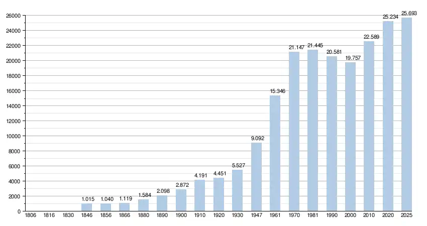 - Source : DGS - Remarque: 1806 jusqu'à 1981=recensement; depuis 1990=nombre d'habitants chaque 1er janvier[3]