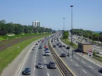 Frederick G. Gardiner Expressway, généralement nommée « The Gardiner » ou traduction littérale : « La voie express Frederick G. Gardiner » par ses riverains, est une voie autoroutière reliant le centre-ville de Toronto, au Canada, à sa banlieue Ouest. Longeant les rives du lac Ontario, elle s'étend de l'échangeur reliant l'autoroute 427 et la Queen Elizabeth Way à l'Ouest à sa jonction avec la Don Valley Parkway à l'Est, située à l'embouchure de la Don River. Sur une partie de son parcours, à l'Est de Dufferin Street, l'autoroute est surélevée et surplombe Lake Shore Boulevard.
