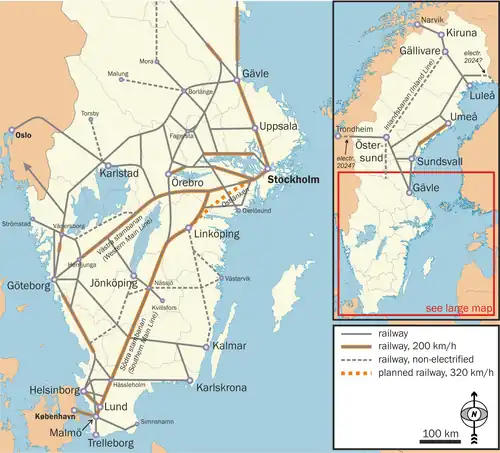 - ↑ (sv) « Stora störningar i tågtrafiken drabbar många Uppsala-pendlare », sur Sveriges Radio, (consulté le )