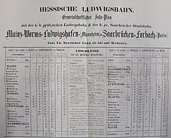 En 1844, les citoyens de Mayence et de Worms prirent l'initiative et fondèrent une entreprise qui devait construire une ligne de chemin de fer entre Mayence et Worms. L'entreprise a ensuite reçu le nom de chemin de fer Louis de Hesse (de) (HLB). Les années de disette 1846-1847, la révolution de 1848/49 et les efforts des investisseurs privés pour relier la ligne de chemin de fer avec le Palatinat (Bavière) et donc aussi avec l'Alsace et la Lorraine ont entraîné des retards dans la construction. Ce n'est que le qu'un traité d'État (allemand : Staatsvertrag) entre le grand-duché de Hesse, qui prévoyait que la Société des chemins de fer Louis du Palatinat (de) poursuivrait la construction jusqu'à Ludwigshafen am Rhein, fut présenté[3].