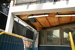 - ↑ L'entrée principale de la gare est au niveau du sol, les voies et les quais au niveau inférieur en tranchée couverte.