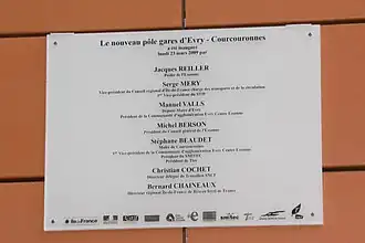 - ↑ Dossier de Presse de l'inauguration du nouveau pôle intermodal d'Évry - Courcouronnes, daté du 23 mars 2009.