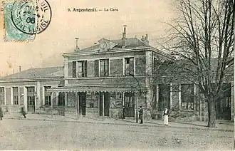 En 1851, la Compagnie du chemin de fer de Paris à Saint-Germain ouvre une nouvelle ligne entre Asnières-sur-Seine et la rive gauche de la Seine en face d'Argenteuil. Pour se rendre à Paris, via la gare Saint-Lazare, il faut emprunter le pont d'Argenteuil, à péage, pour gagner l'embarcadère du chemin de fer situé à Gennevilliers à la limite avec Colombes (ancienne gare d'Argenteuil)[2]. En 1855, la compagnie fusionne avec d'autres pour former la Compagnie des chemins de fer de l'Ouest.