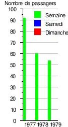 Le graphique et le tableau montrent le nombre moyen de voyageurs d'embarquement par semaine, samedi et dimanche dans les années 70.