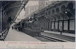 - ↑ (ca) « El patrimoni desaparegut: edifici de viatgers del baixador de Barcelona-Passeig de Gràcia », sur blogmuseuferrocarril.wordpress.com, (consulté le ).