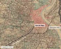 En 1853 débutèrent la construction des boulevards ceinturant Bordeaux. Cependant, avec la construction d’une gare provisoire à Paludate, embryon de la gare principale Bordeaux-Saint-Jean, la gare de Ségur fut fermée en 1855, la gare Saint-Jean devenant la nouvelle tête de lignes pour les directions de La Teste et Bayonne, grâce à un embranchement à Talence.