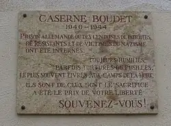 Durant la Seconde Guerre mondiale, la prison de la caserne Boudet est occupée de 1940 à 1944 par les Allemands qui en font un centre de détention et de torture[6]. Une plaque y commémore les sévices infligés aux Résistants durant cette période.