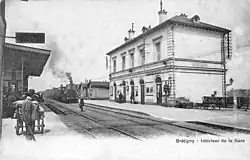 La station est édifiée[b] à l'extrémité des deux kilomètres de la tranchée dite « de Rosière et de Brétigny »[6]. En 1853, pour Edmond Texier qui passe en train à la station, Brétigny est un lieu sans importance composé d'un village et de nombreux hameaux[7].