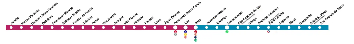 Service 710 : circulations sur la relation Jundiaí - Rio Grande da Serra, via Brás (ce qui correspond à une unification des lignes 7 et 10). Cette desserte a lieu tous les jours, y compris les week-ends et les jours fériés, de 4 h à minuit. Cette relation dessert 31 gares, approximativement en 2 h 8 min. Aux heures de pointe du matin et de la fin de l'après-midi l'écart entre les trains est, à la station, de 12 minutes[5].