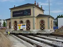 Le bâtiment voyageurs existant est par contre conservé et a été déplacé le , d'environ 40 mètres au nord de la voie ferrée actuelle[5].
