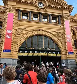 La gare de Flinders Street est la gare centrale du réseau de trains de banlieue de Melbourne en Australie. Elle est située à l'angle de Flinders Street et de Swanston Street, le long du fleuve Yarra au cœur de la cité, et elle s'étend de Swanston Street à Queen Street, couvrant deux îlots urbains. En semaine, plus de 110 000 banlieusards[1] et 1 500 trains l'empruntent quotidiennement. Cette gare est desservie par la compagnie Metro Trains Melbourne pour le service banlieue et par V/Line pour le service régional jusqu'à Bairnsdale.