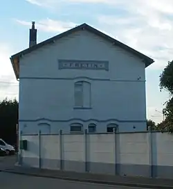L'intérieur de la halte, avec l'ancien bâtiment voyageurs à gauche. | |||||
