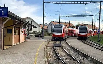 - ↑ Raphaël Ebinger, « La gare de Genolier prépare sa grande mue », 24 Heures (Suisse), (lire en ligne, consulté le ).