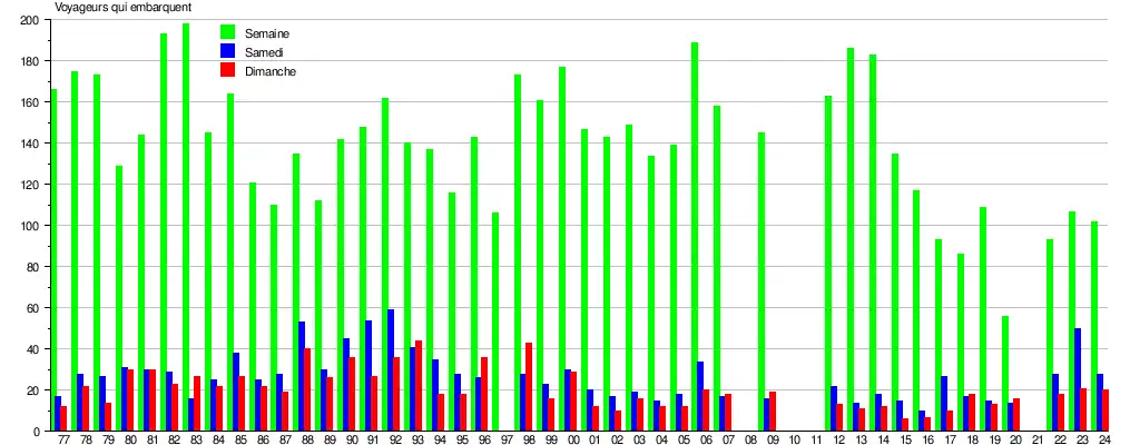 | Nombre de voyageurs qui embarquent à la gare de Gouy-lez-Piéton | |||