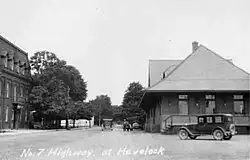 Une première gare est construite en 1883. La gare actuelle est construite non loin de l'emplacement de la première gare ; la construction se poursuit progressivement entre 1914 et 1929 (avec une interruption causée par la Première Guerre mondiale) ; la construction commence peu après l’ouverture de la ligne du Canadien Pacifique vers Port McNicholl pour l’expédition du blé en provenance de l’ouest canadien. Le blé augmente la valeur de cette ligne de chemin de fer pour la compagnie. La prospérité de la ville dépend en large partie de l’activité ferroviaire associée à la gare [1]. Le quadrillage de rues de Havelock et la rue principale en bordure de la gare et des voies ferrées montrent l'importance de la gare en relation avec la ville[4].