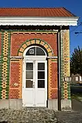 Doté d'une aile de trois travées qui accueillait les voyageurs et les colis, il est le seul exemple survivant de ce type de bâtiment à avoir une façade décorée par de nombreuses briques recouvertes de verre vert bouteille. Elles rythment la façade de brique rouge dans des motifs alternant les briques vertes et blanches.