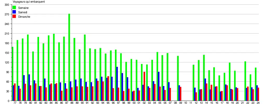 | Nombre de voyageurs qui embarquent à la gare de Jussenville | |||
