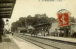 Deux cartes postales d'avant-guerre[1],[2] montrent que la gare de La Madeleine était alors dotée d'un bâtiment provisoire en bois ainsi que de plusieurs annexes, également en bois. Une maison de garde-barrière et un autre petit bâtiment étaient quant à eux construits en brique.