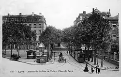 Au début des années 1880 la gare est desservie par deux lignes du tramway de la compagnie des Omnibus et tramways de Lyon. La ligne no 6, venant des Terreaux est achevée en et mise en service le 30 de ce même mois et la ligne no 7, venant de Perrache est achevée en et mise en service le [10].