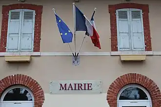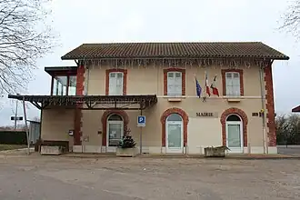 L'ancien bâtiment voyageurs désaffecté du service ferroviaire a été réaménagé pour devenir la mairie de la commune. Il est identique à celui de plusieurs gares de la ligne, construite par la Compagnie de la Dombes, notamment celui de Villars-les-Dombes mais s'en distingue par ses pilastres et larmiers en briques, non enduits.